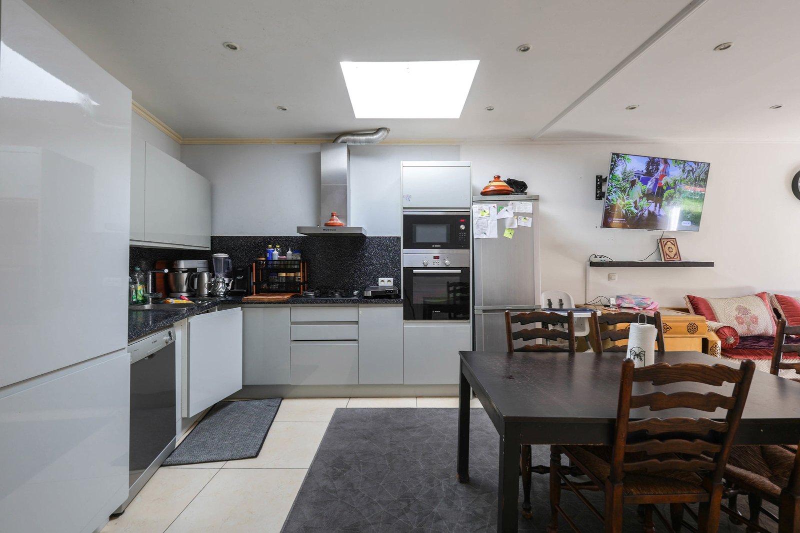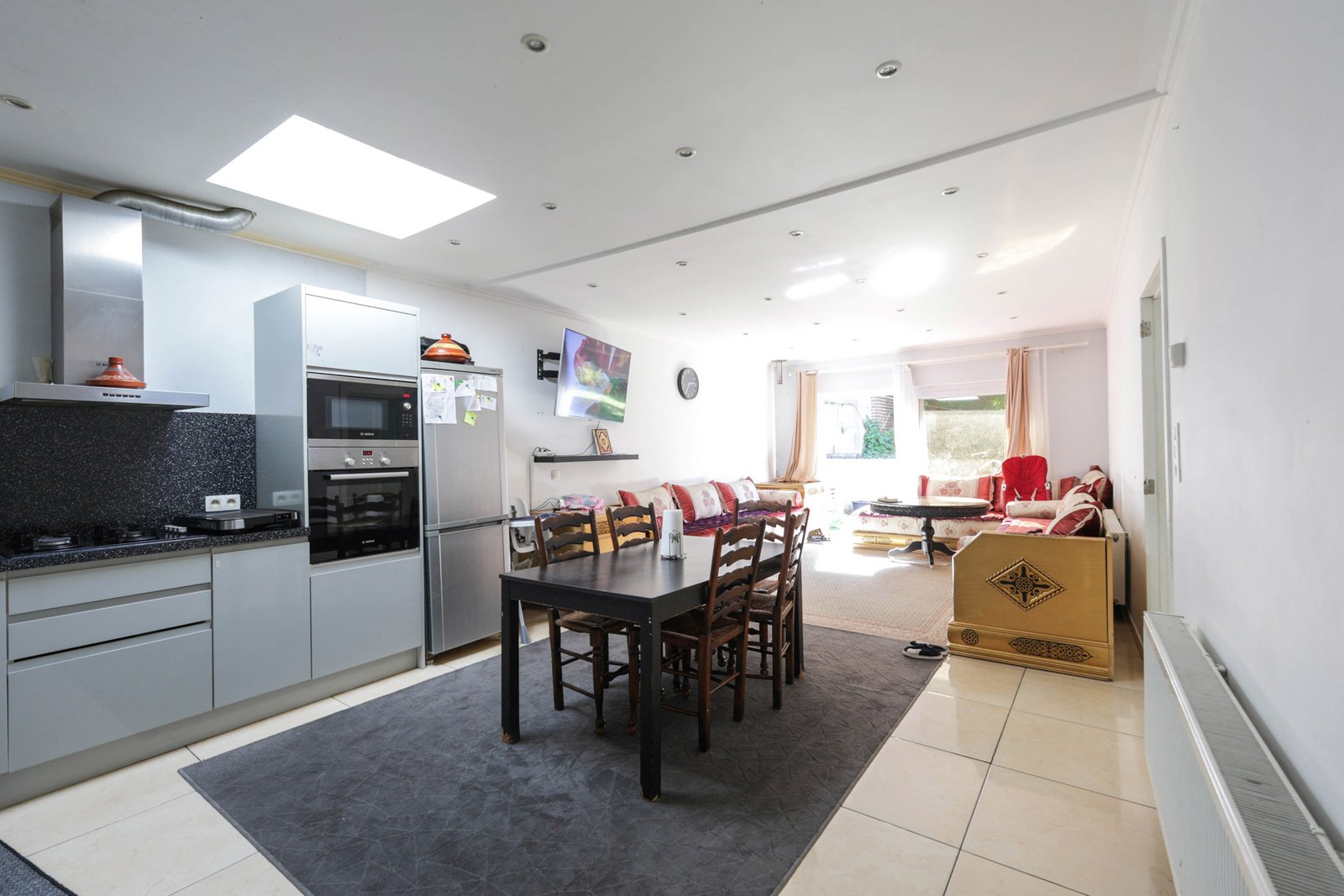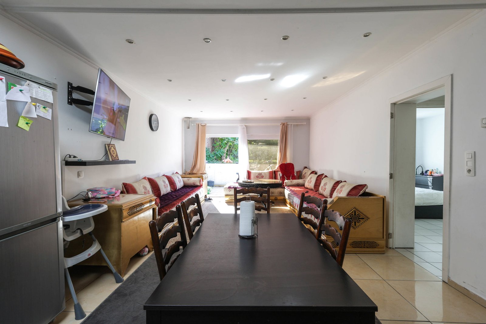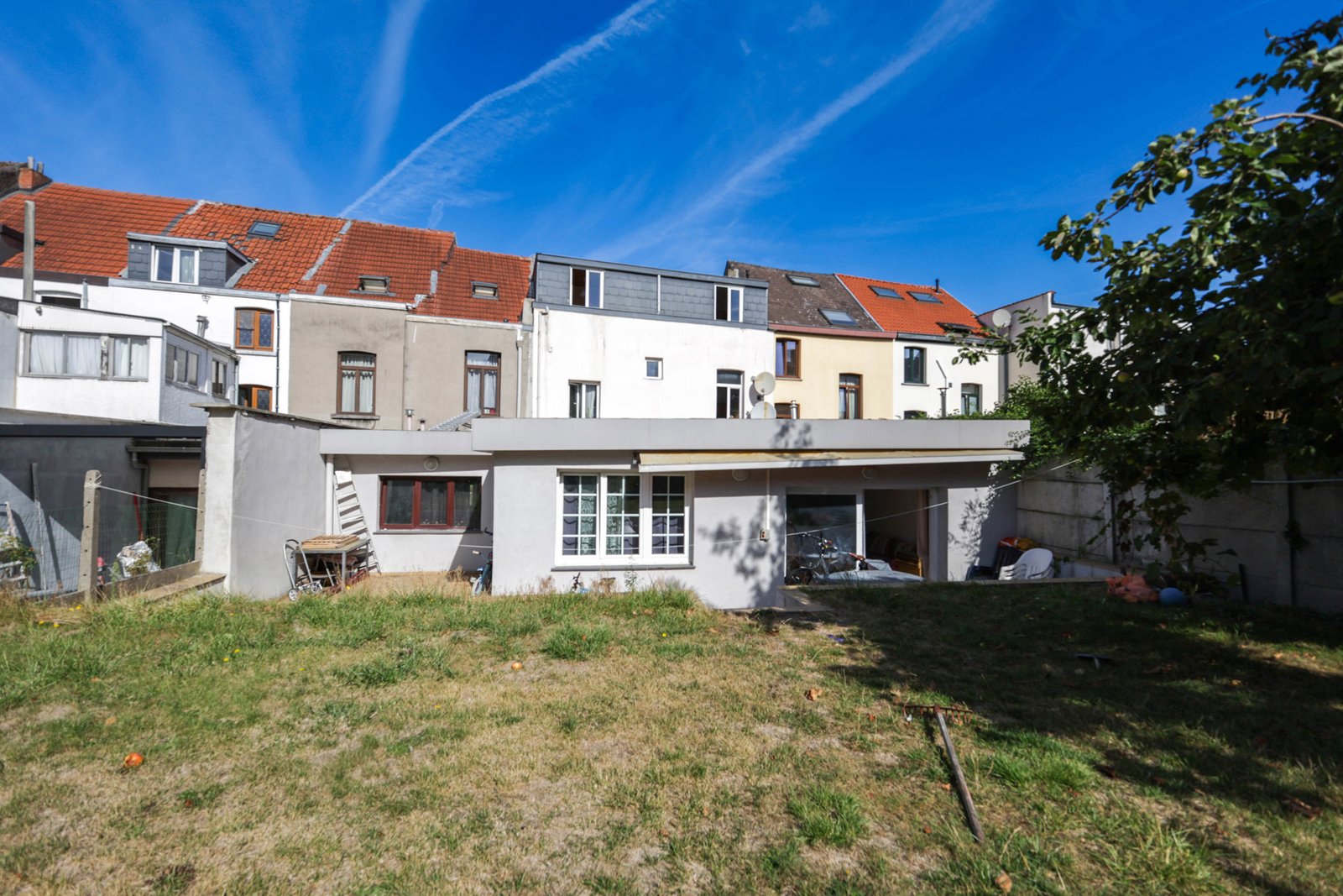 – Rez-de-chaussée arrière : Appartement de 140 m² comprenant : un séjour lumineux ouvert à la cuisine américaine full-équipée, une salle à manger, un hall de nuit, 3 grandes chambres, une salle de douches avec emplacement pour machine à laver et séchoir, et une toilette.