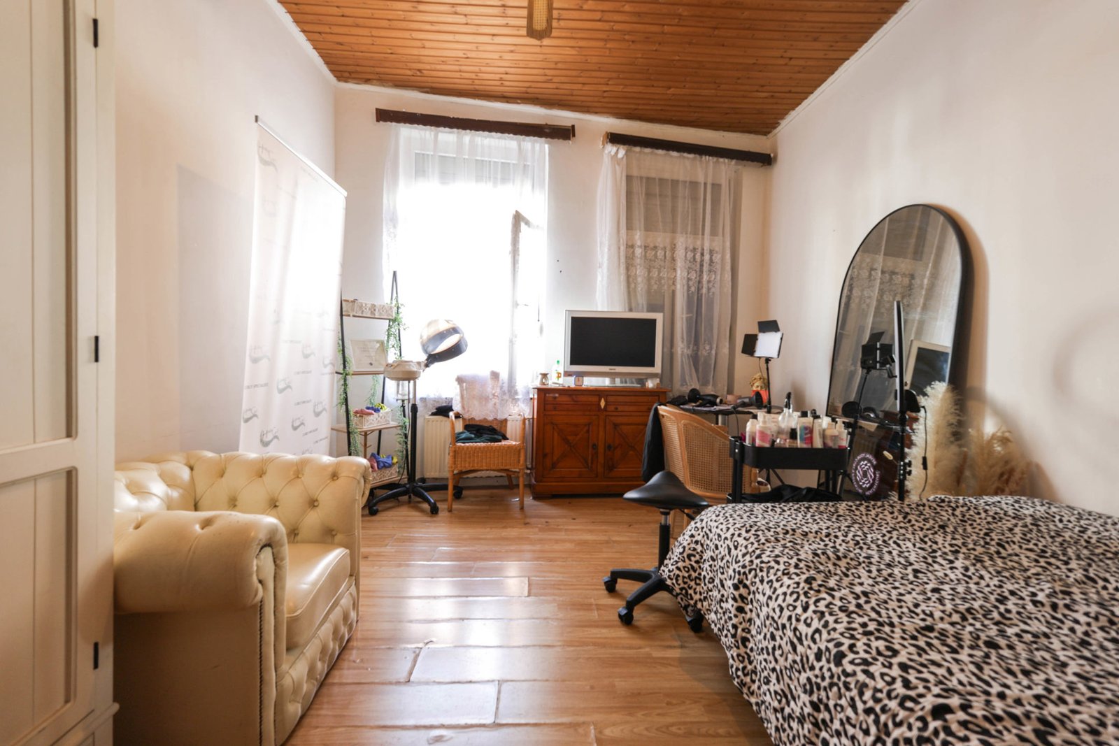– Rez-de-chaussée gauche : Studio avec séjour/chambre, une cuisine, et une salle de douches avec WC.