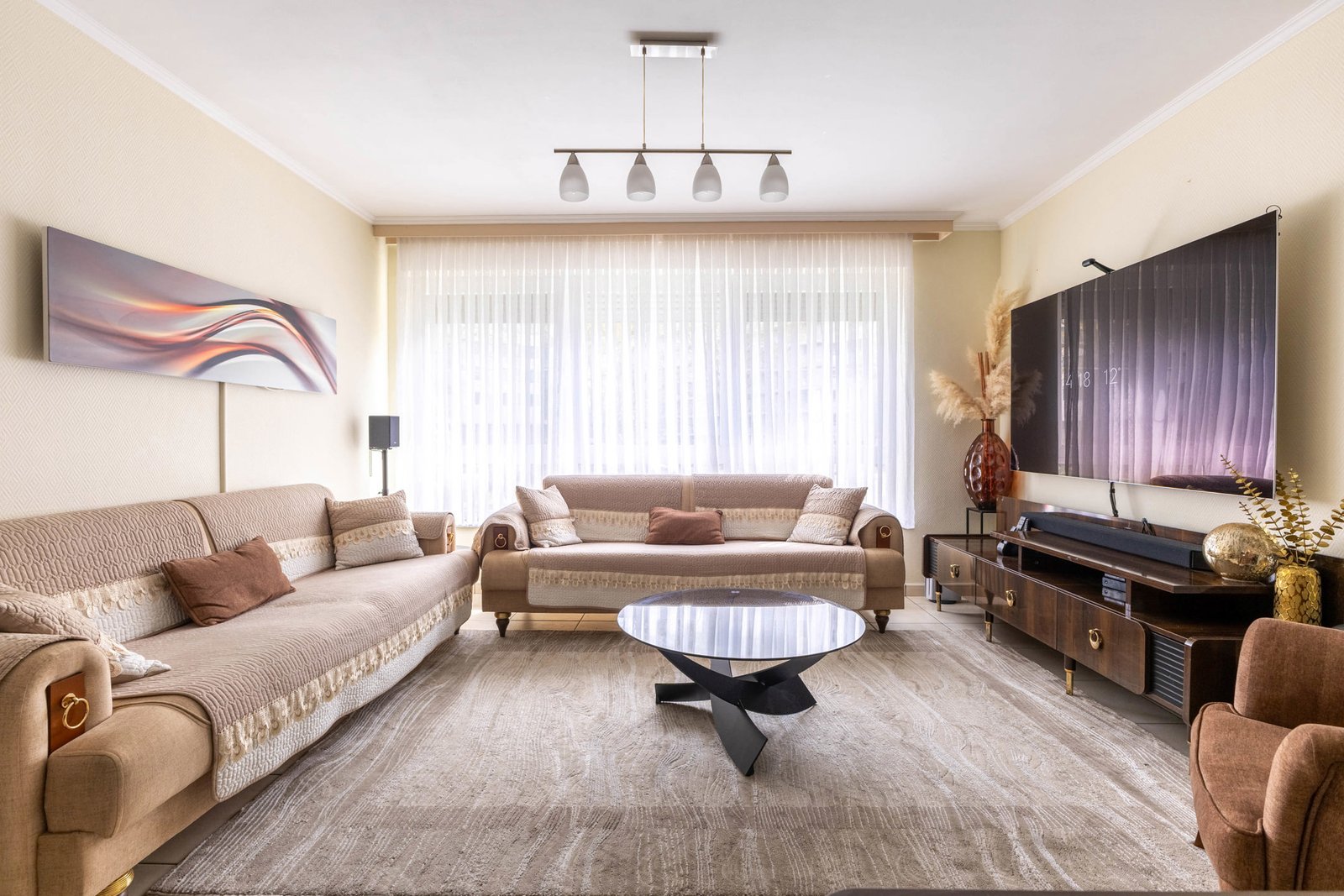 Situé à proximité immédiate des commerces, transports en commun et facilités, appartement au rez-de-chaussée développant une superficie de ± 75 m², offrant un agencement fonctionnel et de beaux espaces de vie.